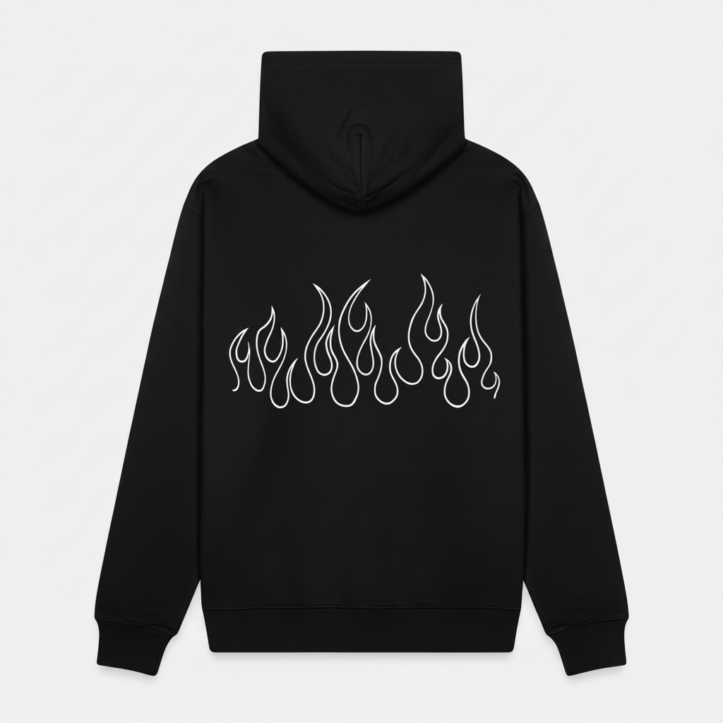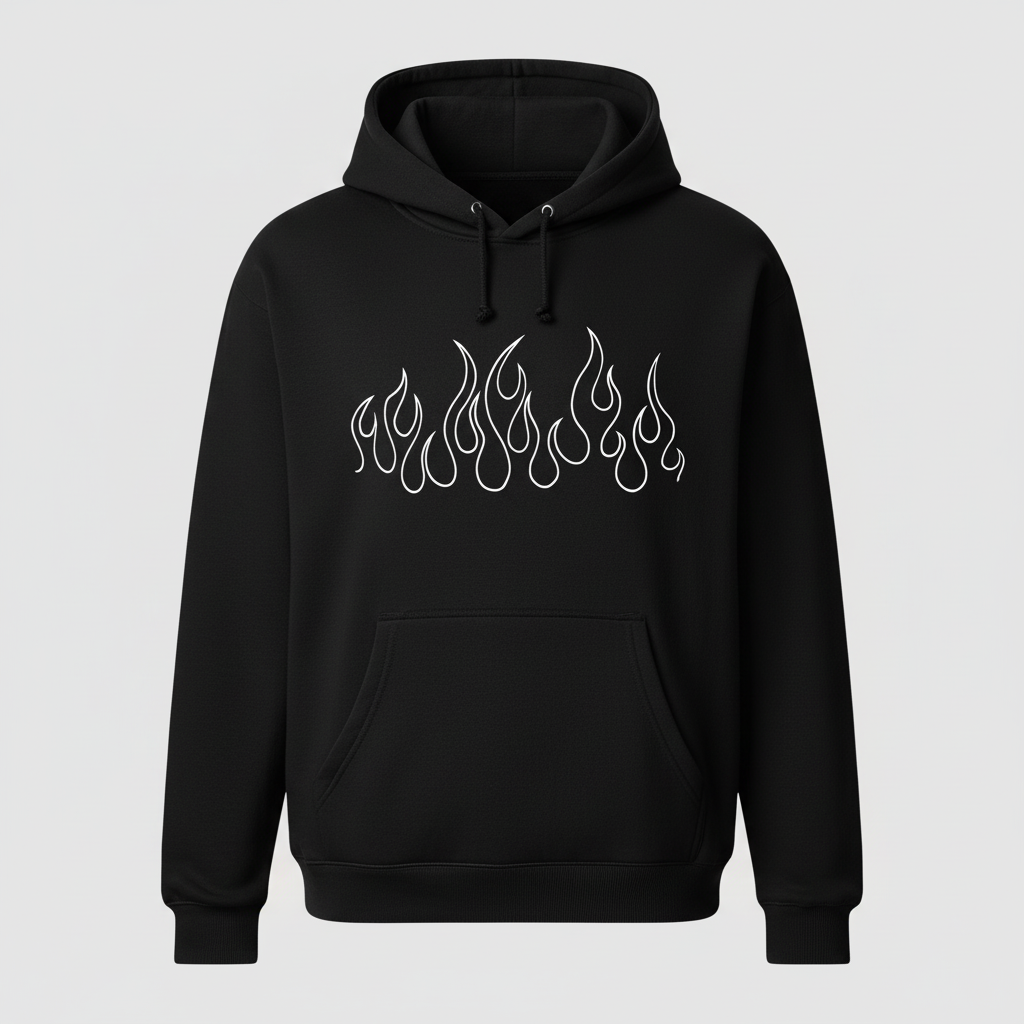 Ignite your style with this bold Flames Outline hoodie! Featuring striking white outline flames in a flowing pattern on a black hoodie, this design brings a hot, energetic vibe to your streetwear collection. The clean line art style creates a dynamic, eye-catching look that's perfect for those who want to stand out and bring the heat. Premium quality fabric ensures comfort while you turn up the fire. Available in black and white.