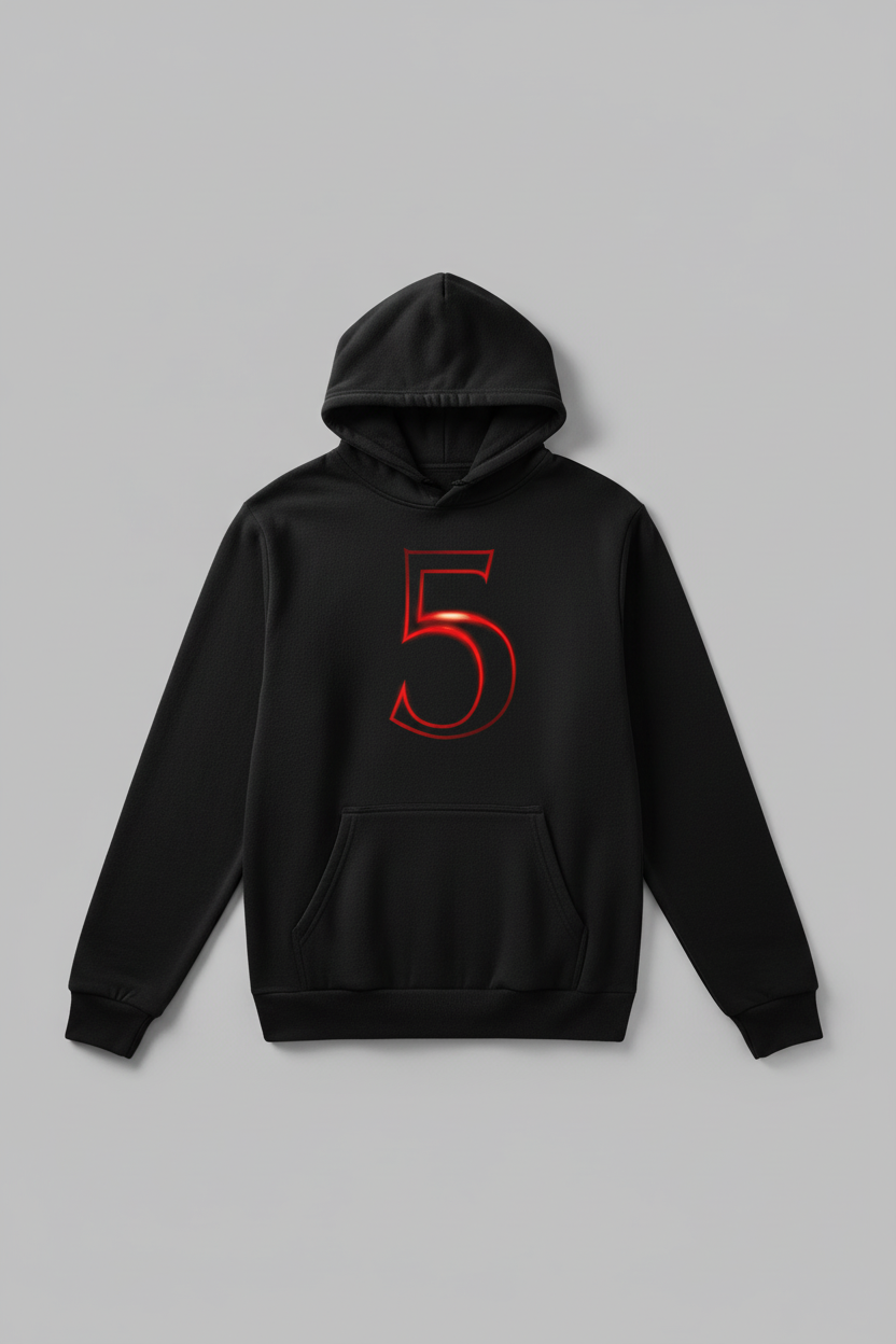 Make a bold statement with this sleek Stranger Things 5 hoodie! Featuring a striking glowing red number 5 design with neon outline effect on a dark background, this hoodie combines minimalist style with eye-catching graphics. Perfect for those who appreciate clean, modern streetwear with a touch of mystery. The vibrant red glow creates a powerful visual impact that stands out. Available in black and white.