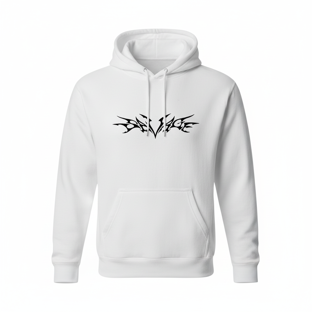 Unleash your fierce side with this striking Tribal Wings hoodie! Featuring a bold black symmetrical tribal wings design with sharp, angular patterns, this hoodie makes a powerful statement. The intricate tribal artwork creates a dynamic, edgy look that's perfect for those who love bold graphics and alternative streetwear. The design combines traditional tribal aesthetics with modern streetwear style for a unique look that stands out. Premium quality fabric ensures comfort while you make your statement. Available in white and black.